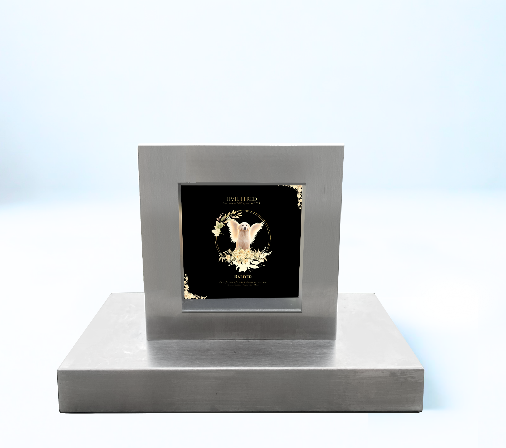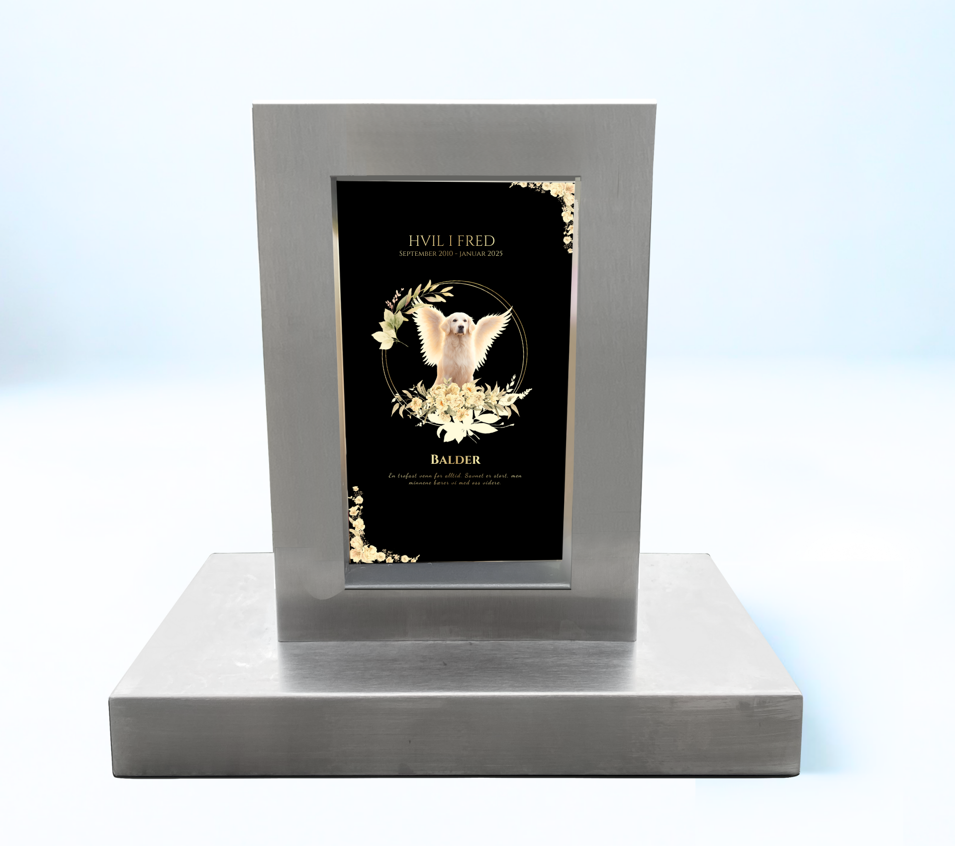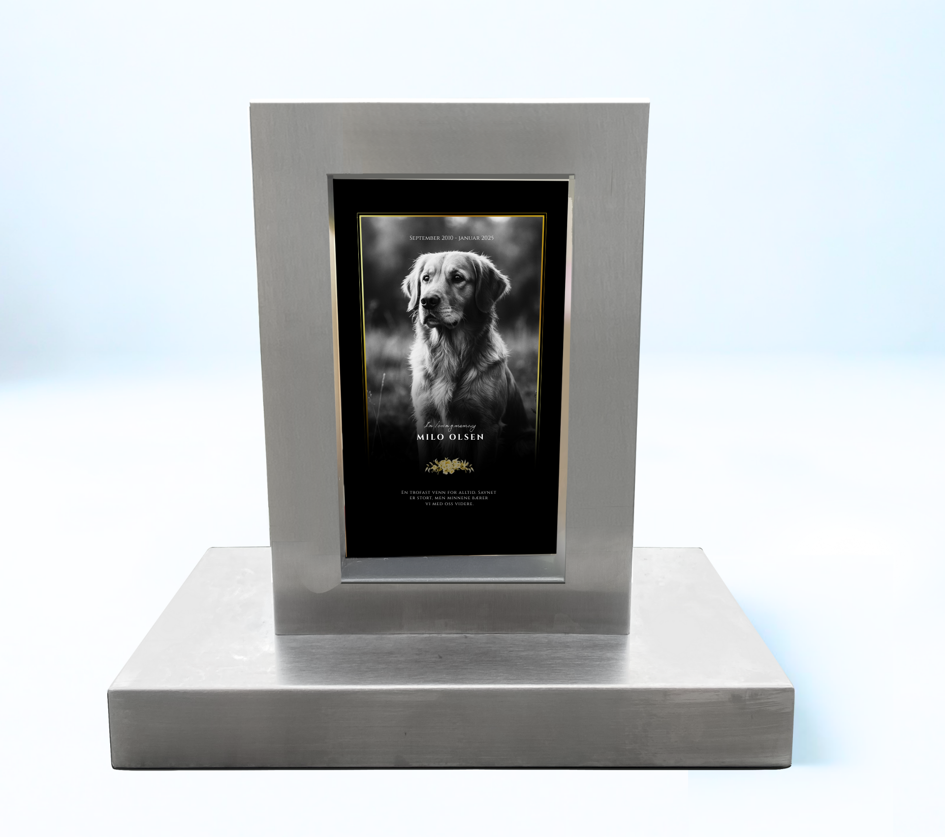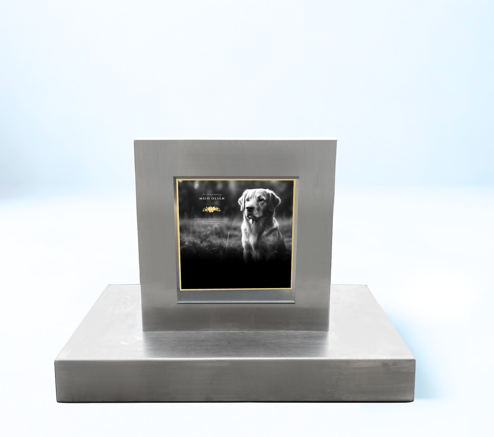 Vakre gravstøtter i børstet stål – skapt med kjærlighet for å hedre hunder, katter og andre kjæledyrs minner.